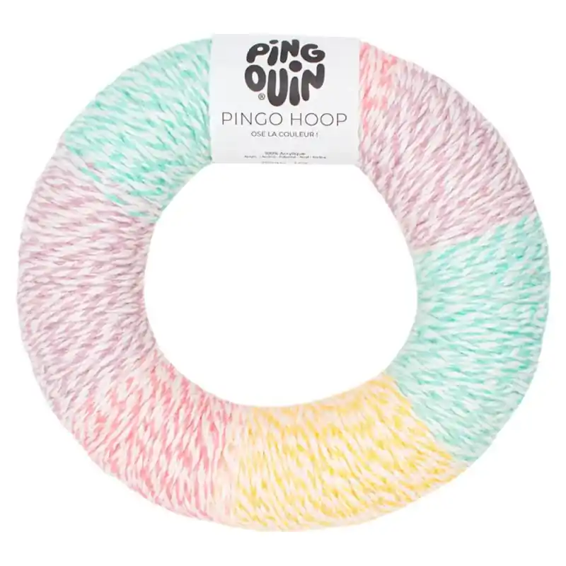 Pingouin Pingo Hoop presenta un formato molto innovativo, una vera e propria “ruota di colore”. Questo gomitolo è presentato in rotelline con sezioni di differenti colori. Grazie all’originale e pratico design, è facile da maneggiare, adatto ai più esperti e ai principianti.