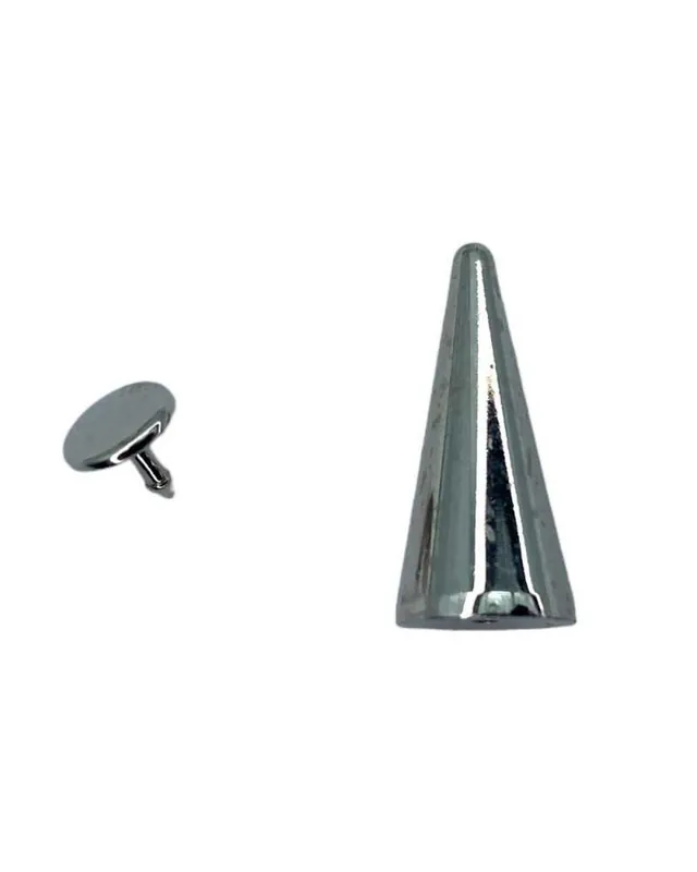 Borchia Metallizzata Materiale Plastica Argento Lucido Cono Rivetto Pressione 1×2 Cm