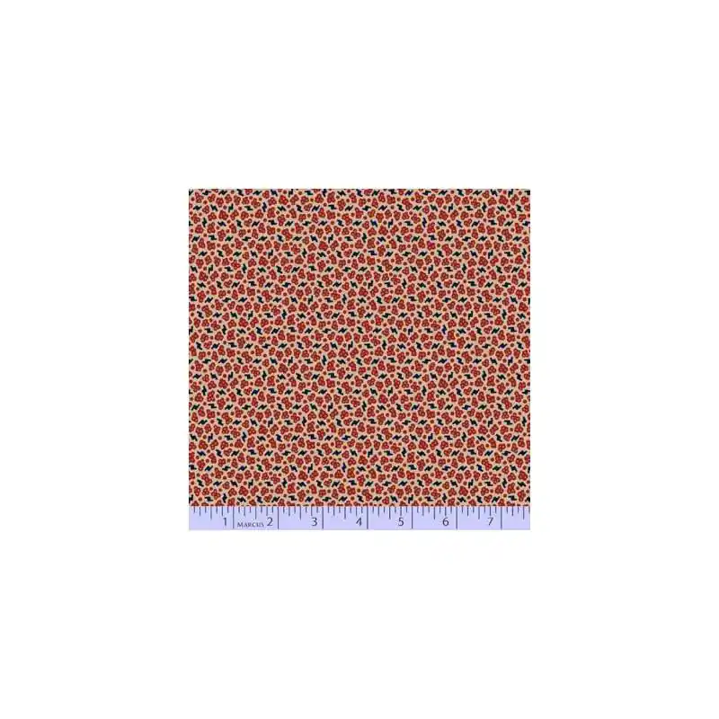 Prezzo Conveniente Marcus Fabrics, Indigo Madder- Tessuto Fondo Beige con Pallini rossi