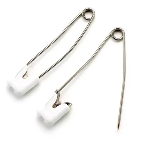 Pratico! Le sue spille di sicurezza sono leggermente curvate per seguire le curve del corpo del bambino e hanno un tappo di chiusura in plastica extra per una doppia protezione. Sono anche resistenti alla corrosione e possono quindi rimanere a lungo nel tessuto.
