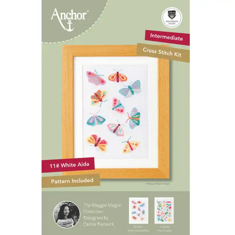 Il Kit di Punto Croce – Moths & Butterflies di Anchor è un set molto completo che include tutto il necessario per ricamare a punto croce questo quadro di farfalle e falene della collezione Maggie Magoo Designs e disegnato da Carole Fenwick