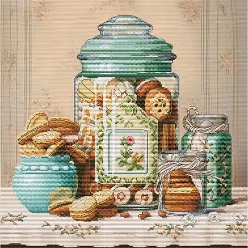 Prezzo Scontato kit ricamo a punto croce – Barattolo per biscotti – Nova Sloboda