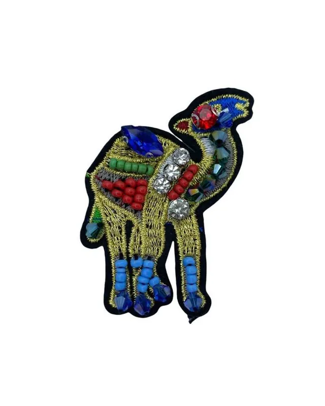 L’applicazione termoadesiva a forma di cammello, con strass e perline ricamate in oro, è perfetta per aggiungere un tocco di eleganza e originalità ai tuoi capi e accessori. Questa decorazione misura 6×4 cm ed è realizzata con il 70% di poliestere e il 30% di rayon, garantendo resistenza e durabilità. Ideale per giacche, sweatshirts, magliette, borse, abiti, jeans, stivali, felpe e tute, questa applicazione è facile da applicare e aggiunge un effetto scintillante ai tuoi progetti creativi. Prezzo indicato per singolo pezzo.