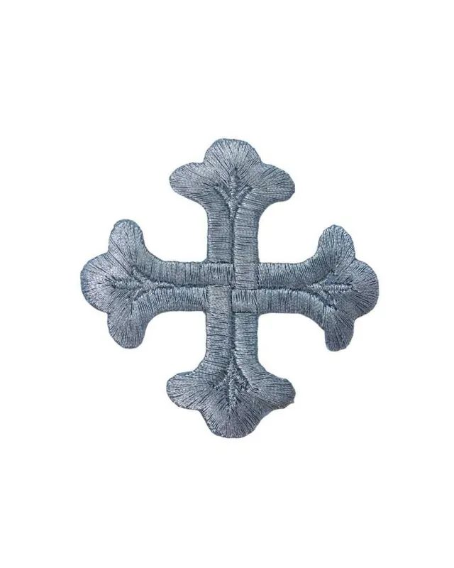 Applicazione Termoadesiva Simbolo Croce – Ricamo Argento in Lurex, 75 mm