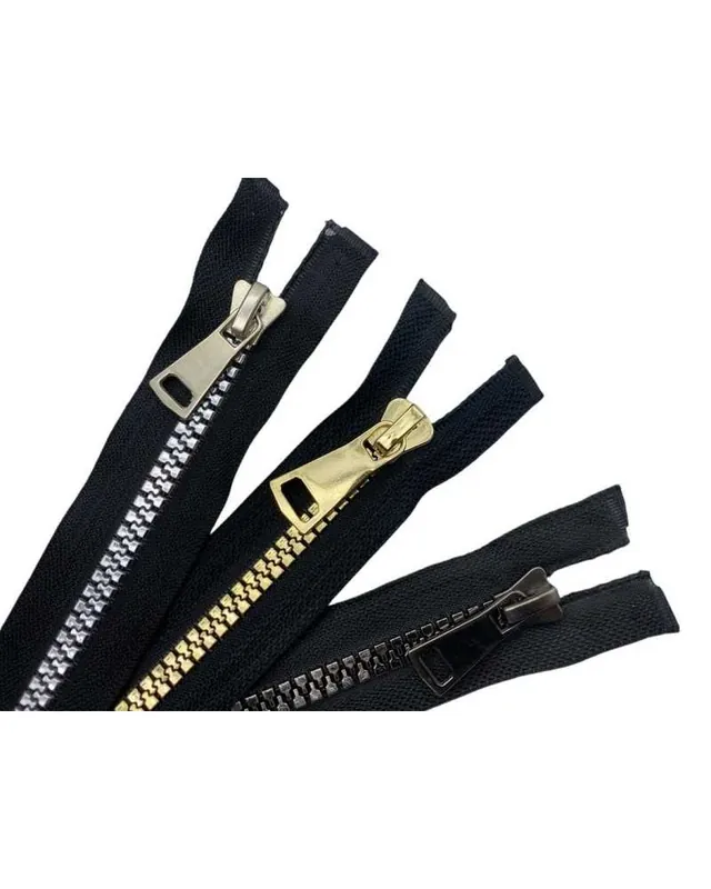 Professionale Cerniera Pressofusa Plastica Nera – Catena Lucida N.8 Oro, Argento, Canna di Fucile – Lunghezza 85 cm – 1 Cursore Divisibile