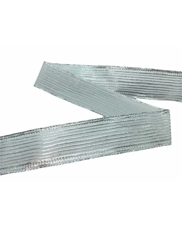 Nastro Natale Argento Rigato – Fillawant – Anima Modellabile – Altezza 25 mm – Prezzo al Metro – Taglio Intero – 100% Poliestere