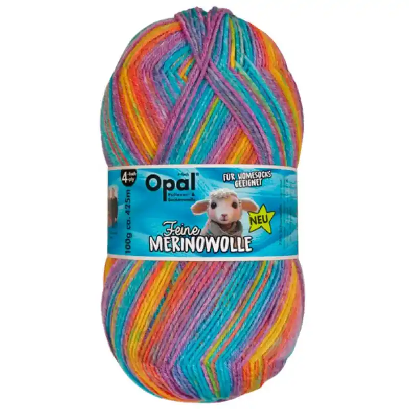 Scopri la Opal Feine Merinowolle 4-ply, una lana di alta qualità composta dal 75% di lana merino fine Superwash e dal 25% di poliammide. Questo filato a 4 capi unisce morbidezza, resistenza e design unici in colori striati, ideale per realizzare calzini pieni di colore.