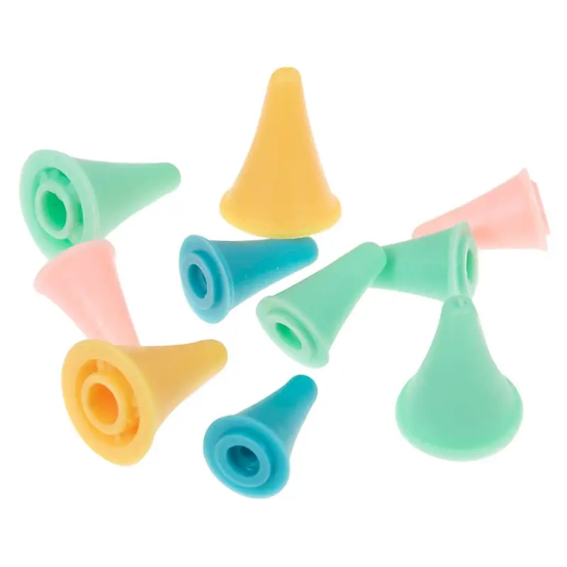 Hanno forma di cono e offrono una tenuta ferma e sicura su tutti i tipi di aghi da maglia. Ogni pacchetto contiene 5 paia (10 protettori in totale), con 2 paia grandi e 3 piccoli, che si adattano ad aghi da 2 mm a 10 mm di spessore.