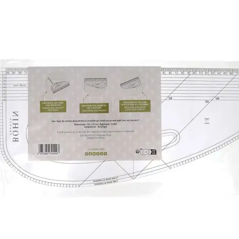 Questo righello soddisfa tutte le vostre esigenze: creare e regolare i vostri modelli, aggiungere i margini di cucitura, misurare e disegnare linee e curve.