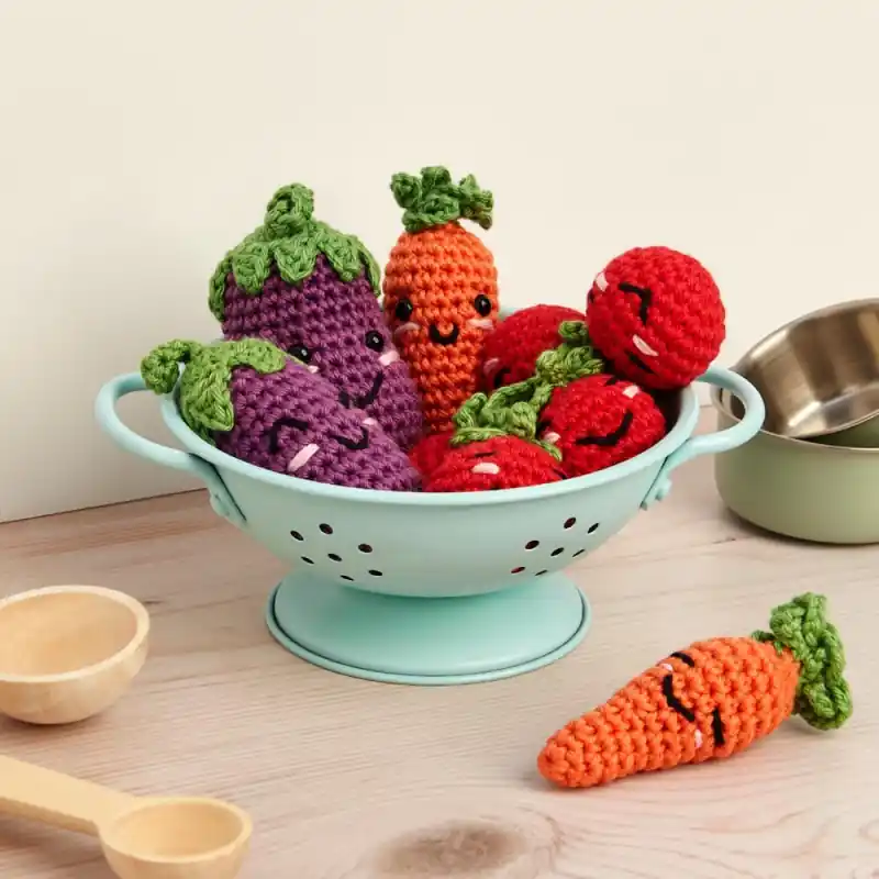 Il Kit Amigurumi – I nostri Amici Vegetali di DMC ti permette di realizzare all’uncinetto cinque graziose verdure amigurumi, ideali da regalare ai bambini o per abbellire la tua cucina con un cestino decorativo. Questo kit non offre solo divertimento creativo, ma educa e promuove anche l’amore per le verdure tra i più piccoli.