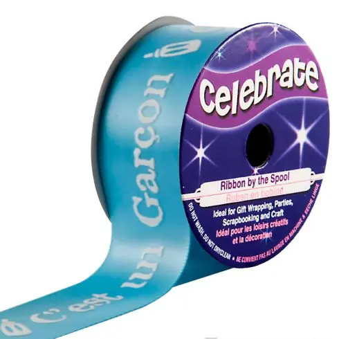 Raso su un rotolo – Raso blu con stampa bianca “it’s a boy” – 25 mm x 3 m – Celebrate Non Perdere