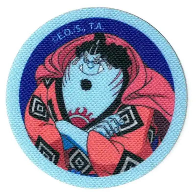 La Patch Termoadesiva One Piece One Piece Jinbe (65 mm di diametro) rappresenta il potente timoniere di Cappello di Paglia, noto per la sua lealtà, saggezza e padronanza del karate gyojin. Il suo design circolare mostra Jinbe con il suo caratteristico abbigliamento tradizionale nei toni del rosso e del nero, su uno sfondo blu intenso che evoca la sua connessione con il mare e il suo spirito sereno ma imponente.