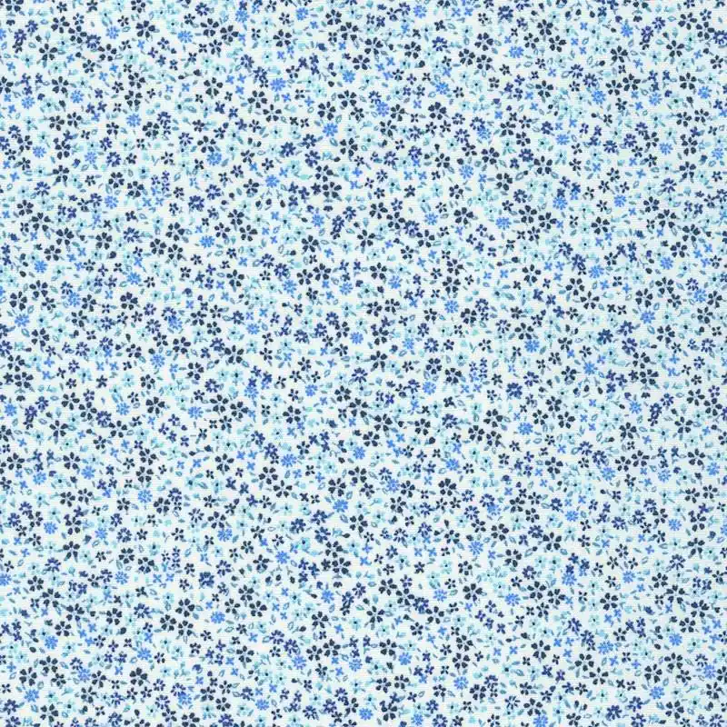Tessuto a piccoli fiori in cotone della collezione Sevenberry, Petite Garden Blues di Robert Kaufman nel colore blu pervinca