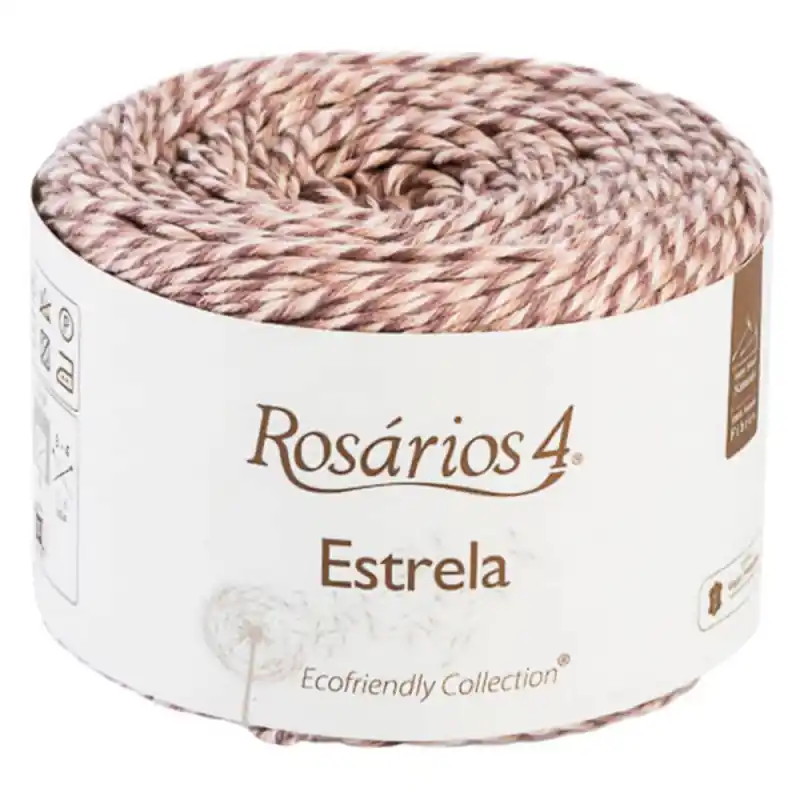 Rosários4 Estrela è un filato composto al 100% da cotone, morbido, traspirante e perfetto per realizzare capi leggeri e confortevoli. Il suo effetto mouliné, ottenuto con una miscela sottile di colori, crea una finitura unica in ogni lavoro.