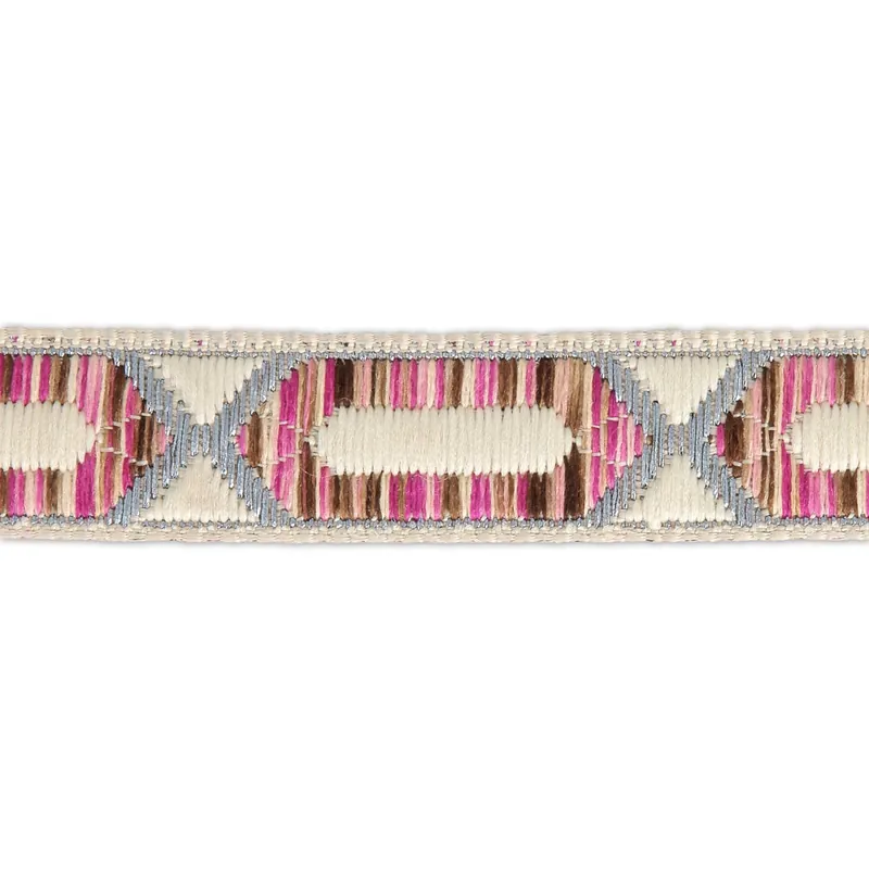 Saldi Galon brodé motif hexagone allongé 20 mm Beige/Rose/Argenté x50cm