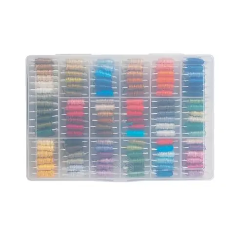 Questa pratica scatola di plastica ti permetterà di classificare e organizzare il tuo stock di fili da ricamo e di averli a portata di mano.