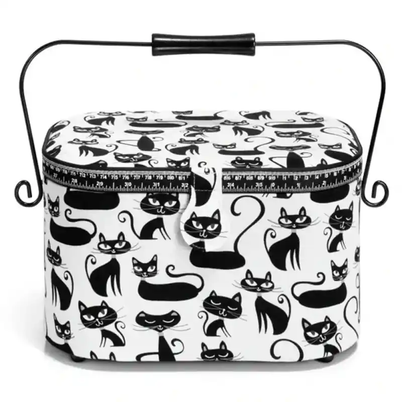La Scatola da Cucito Grande Cats di Prym è un incantevole accessorio per la conservazione con un design accattivante che presenta una stampa di gatti neri su sfondo bianco. Questo ampio cesto da cucito è ideale per conservare tutti i tuoi utensili da cucito. Oltre al suo spazioso interno, dispone di un vassoio rimovibile in plastica trasparente che include sette pratici scomparti per organizzare piccoli articoli da cucito.
