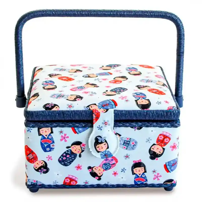 La Scatola da Cucito Media Kokeshi di Prym è un gioiello di organizzazione per i tuoi attrezzi da cucito. Il suo design quadrato è impreziosito da un tessuto bellissimo con illustrazioni delle bambole giapponesi Kokeshi, conferendogli un tocco distintivo e originale.