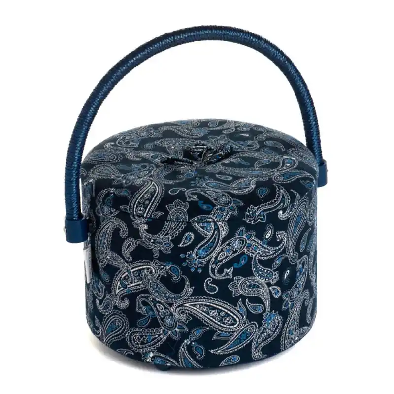 La stampa di questa sacatola da cucito ti ricorderà le bandane. È foderata con un tessuto blu scuro 100% cotone, con un’originale stampa paisley. Anche il manico in vimini è blu, il che crea una bella combinazione.