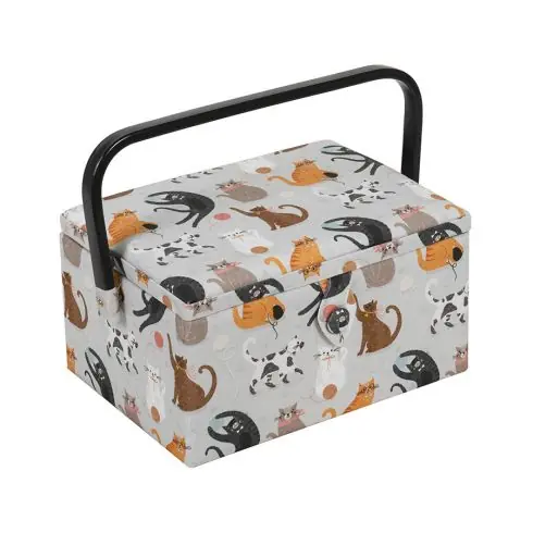 Scatola da cucito “Chats”, un pratico accessorio per riporre tutti i materiali di merceria e cucito.