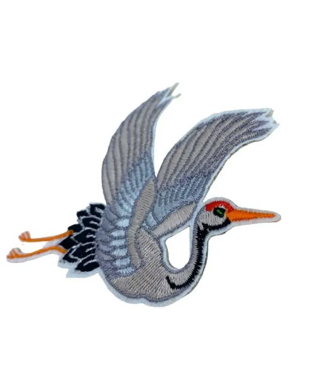 Scelto Dai Clienti Applicazione Termoadesiva Adesiva Patch Ricamo Airone Uccello Volatile 10×9 Cm AutoTermoAdesivo, SX, GRU