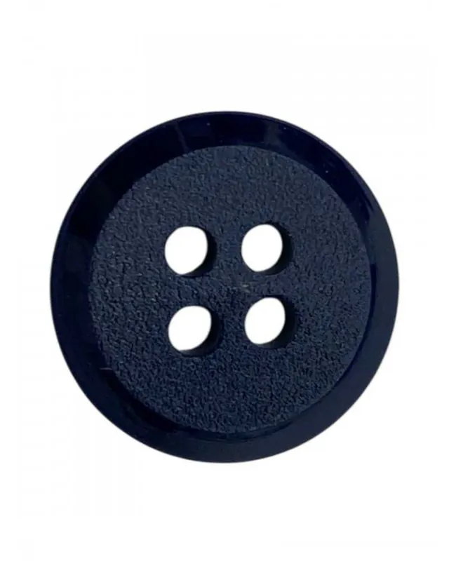 Descrizione prodotto: Bottoncini tondi piatti in plastica blu scuro, con 4 fori centrali per cucitura. Finitura opaca al centro con bordo lucido, perfetti per camiceria, abbigliamento casual, sartoria artigianale e accessori moda. Diametro 13 mm, linea 18, venduti in coppia.