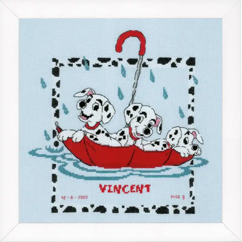 Il Kit punto croce Disney Dalmata di Vervaco include tutti i materiali per ricamare questo divertente quadro dei dalmata del film “La carica dei 101” di Disney.