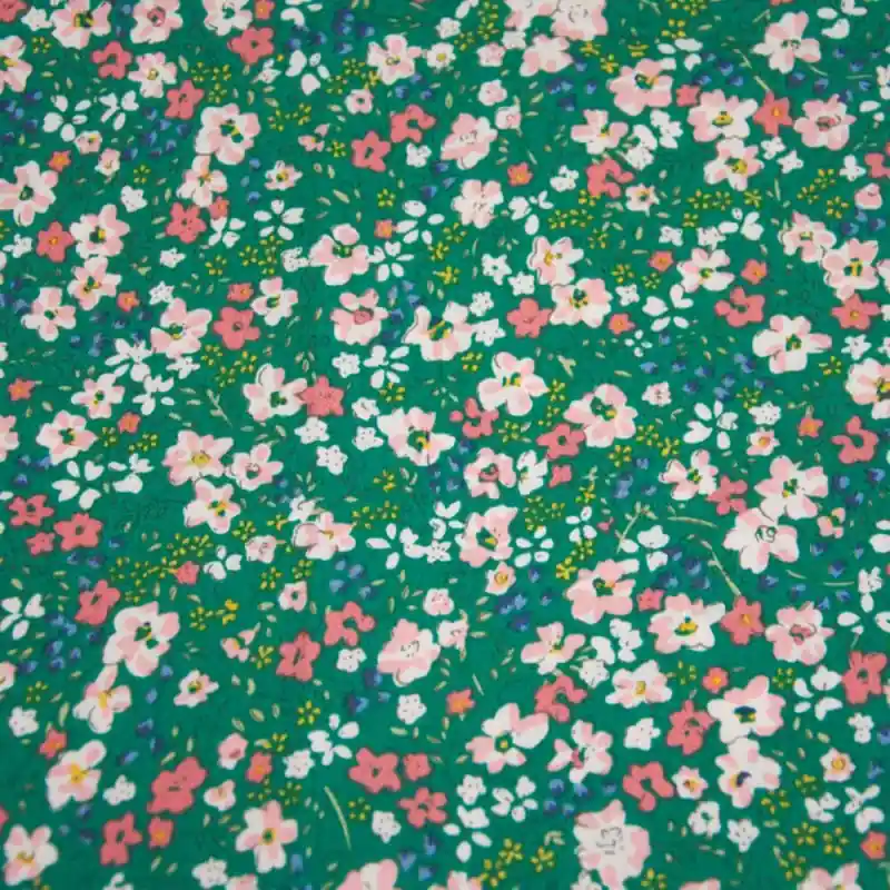 Il Tessuto in Viscosa Print – Summer Flowers è perfetto per realizzare capi freschi per la primavera o l’estate. Con un’incantevole stampa di fiori rosa e bianchi su sfondo verde, questa viscosa si distingue per il suo grande drappeggio e la sua eccezionale morbidezza.