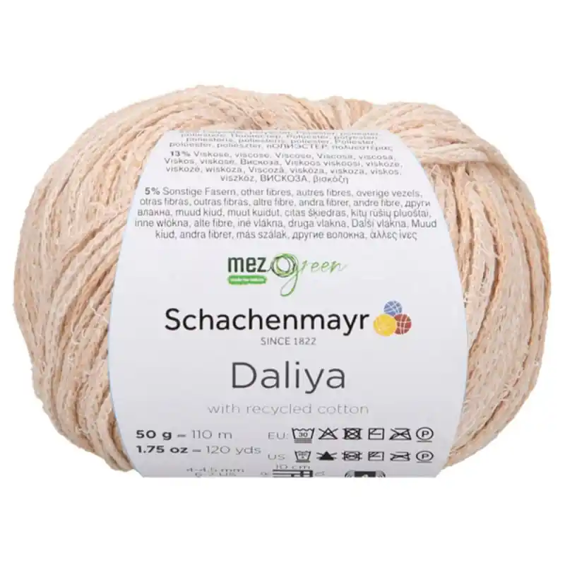 Schachenmayr Daliya è un filato fantasia che risveglia la creatività combinando vari materiali, colori e trame. Questo filato innovativo gioca con effetti di colore e mescola materiali come cotone, poliestere e viscosa in una struttura di nastri rotondi intrecciati con frange di cotone.
