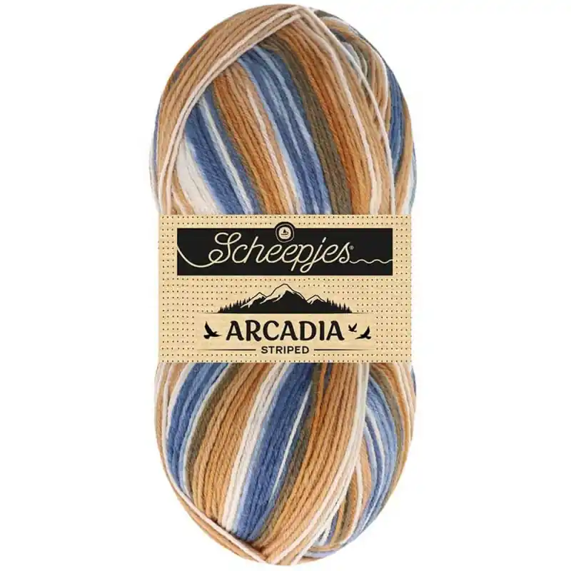 Scheepjes Arcadia Striped è un filato progettato per la maglieria di calzini, composto dal 75% di lana vergine Superwash e dal 25% di poliammide. Questa combinazione di fibre offre un’eccellente resistenza all’usura senza sacrificare la morbidezza e la traspirabilità naturale della lana, e permette inoltre di lavare i capi in lavatrice senza preoccupazioni.