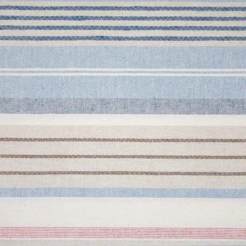 Recycled Canvas Funny Stripes Nautic di Katia Fabrics è una tela riciclata che combina la resistenza del tessuto canvas con la freschezza di un design a righe in toni di blu, bianco e un tocco di rosso corallo. Il suo stile marinaro e rilassato è ideale per dare un’atmosfera costiera e naturale a qualsiasi spazio della tua casa.