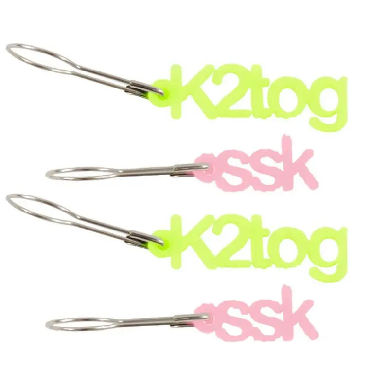 Questo set di segnalini comprende 4 unità: due segnapunti con le iniziali “SSK” e due segnalini con le iniziali “K2tog”. Questi pennarelli ti saranno di grande aiuto per segnare il punto esatto in cui puoi effettuare diminuzioni specifiche nel tuo lavoro.
