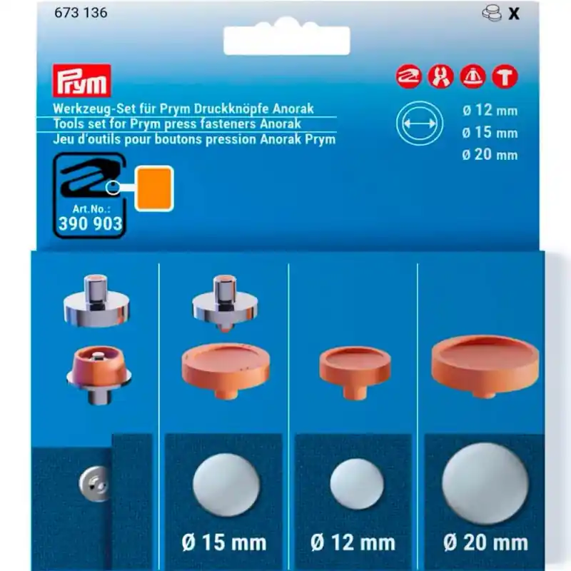 Caratteristiche del Set per Applicare Bottoni Anorak a Pressione da 12, 15 e 20 mm – Prym: