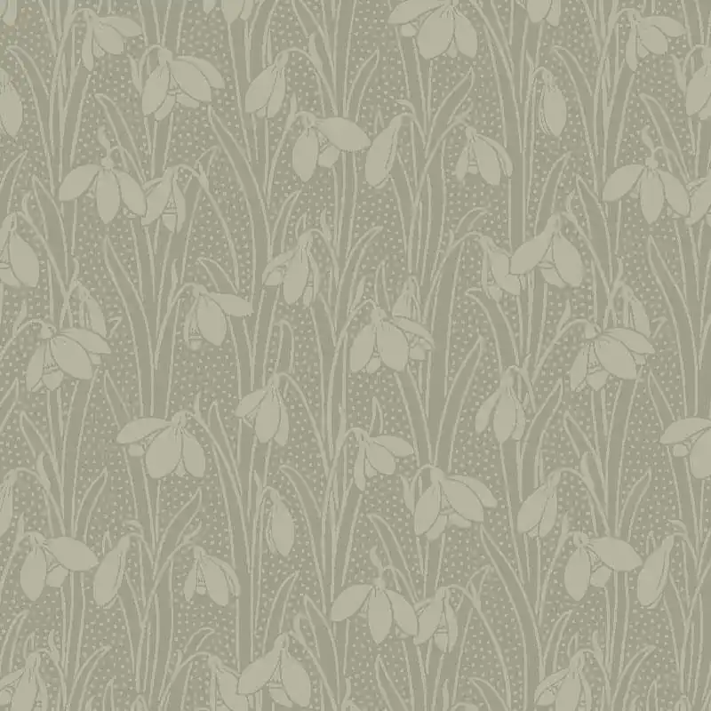 Snowdrop Spot Lichen, Tessuto Verde Lichene con Bucaneve tono su tono – Liberty Fabrics Affare