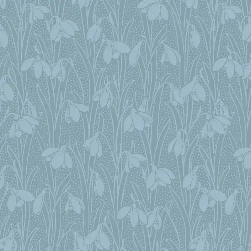 Snowdrop Spot Steely Sky, Tessuto Azzurro Cielo d’Accaio con Bucaneve tono su tono – Liberty Fabrics Ultime Pezzi