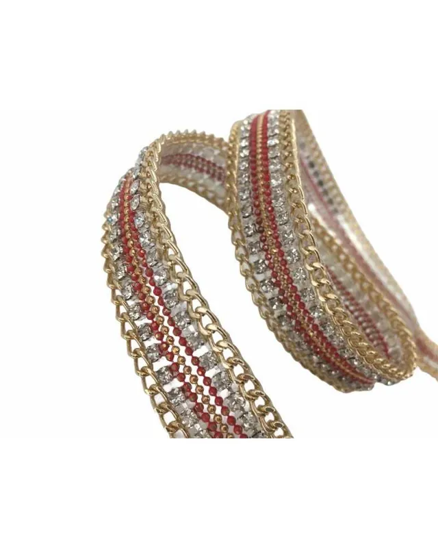Soddisfatti O Rimborsati 50 Cm Passamaneria Rosso Termoadesiva Strass Lurex Catena Oro Alto 18 Mm