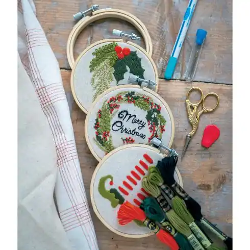 Designer Daffy, in collaboration with Vervaco, is offering do-it-yourself embroidery kits. You’ll find all the materials you need to make three Christmas designs, and you can download the embroidery designs and stitches online using the QR Code provided.