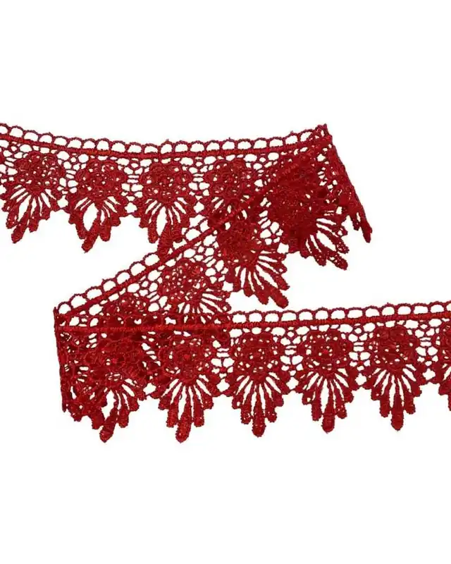 Passamaneria Pizzo Macramè Rosso – Punta Fiore Alta 5 cm – Prezzo al Metro – 100% Poliestere