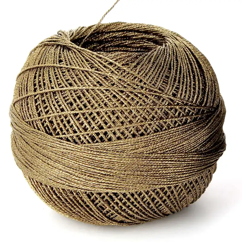 Ce fil Liz Metallic 6 brins comparable à la taille 20 de la gamme Lizbeth, couleur Mocha Brown (n°314) est en polyester recouvert d’un fil métallisé en polyéthylène téréphtalate (PET).