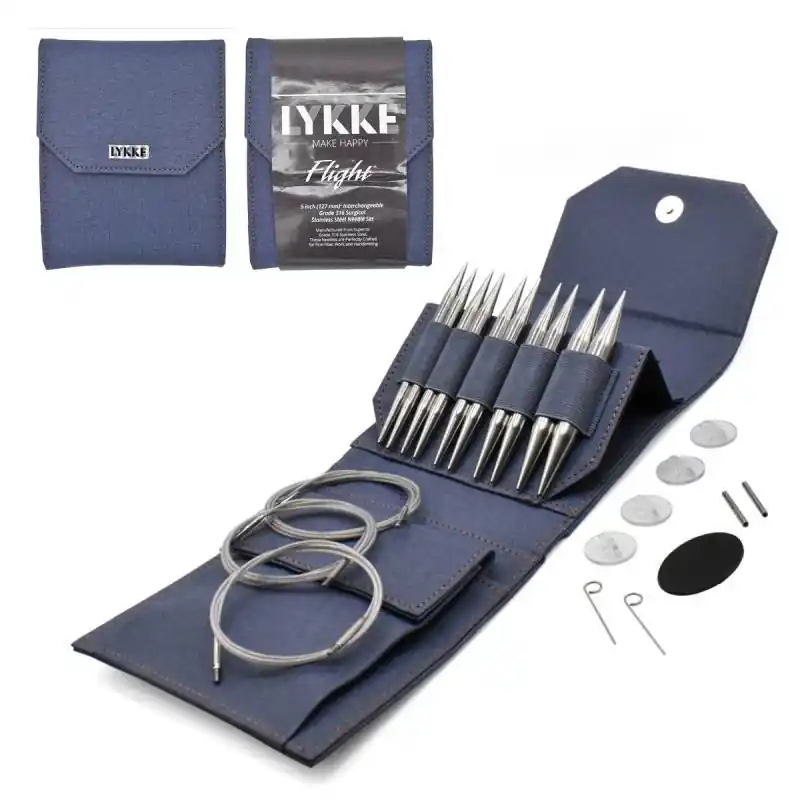 Contenuto del Set di Ferri Circolari Intercambiabili Flight Bulky Denim di Lykke: