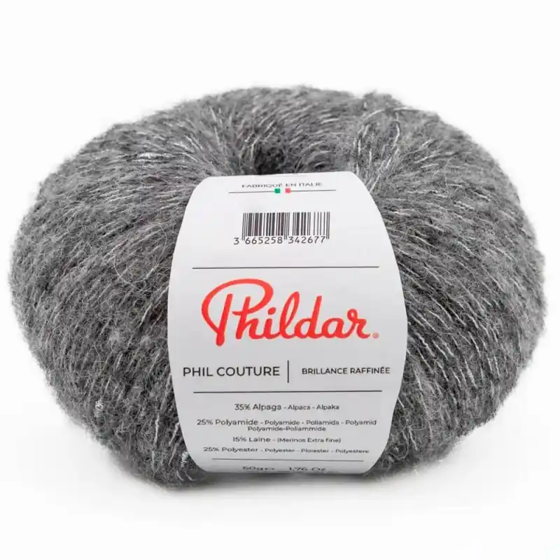 Ciò che rende unico Phil Couture sono le sue delicate palline lucide in poliestere metallizzato, che si combinano perfettamente con il pelo di alpaca per aggiungere un tocco di scintillio e lusso a ogni progetto.