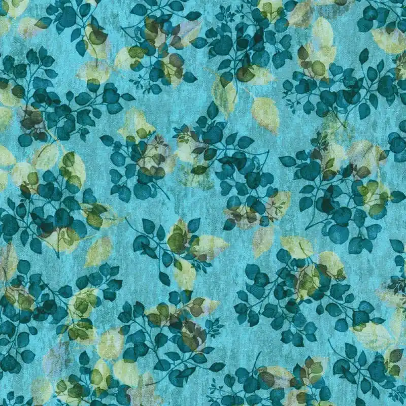 Spedizione Gratuita Sienna Waterfall, Tessuto Azzurro Cascata con foglie blu – Robert Kaufman