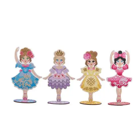 – 4 statuette Ballerina composte da 2 parti in legno, una delle quali ha un diagramma da ricoprire parzialmente con diamanti