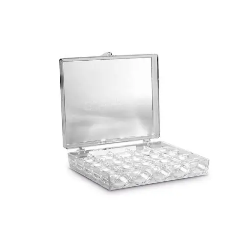 Scatola portalavoro di plastica vuoto da 12 x 10 x 3 cm, per 25 lattine di macchina da cucire.