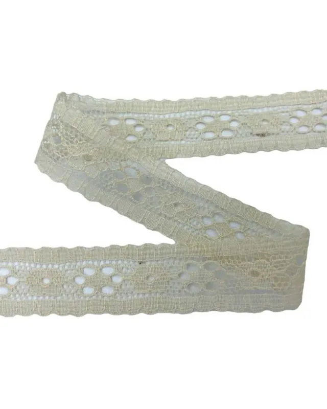 2 Mt Passamaneria Pizzo Raschel Morbido Ecru Disegno Fiore Smerlato Alto 2 Cm
