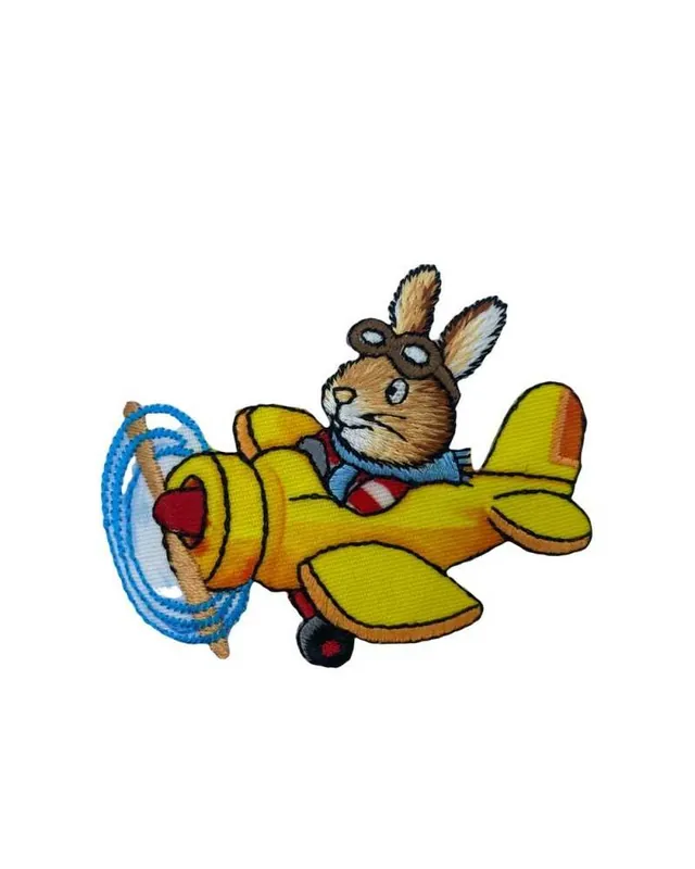 Subito Disponibile Applicazione Termoadesiva Patch Ricamo Coniglio Aereoplano Giallo 7×6 Cm