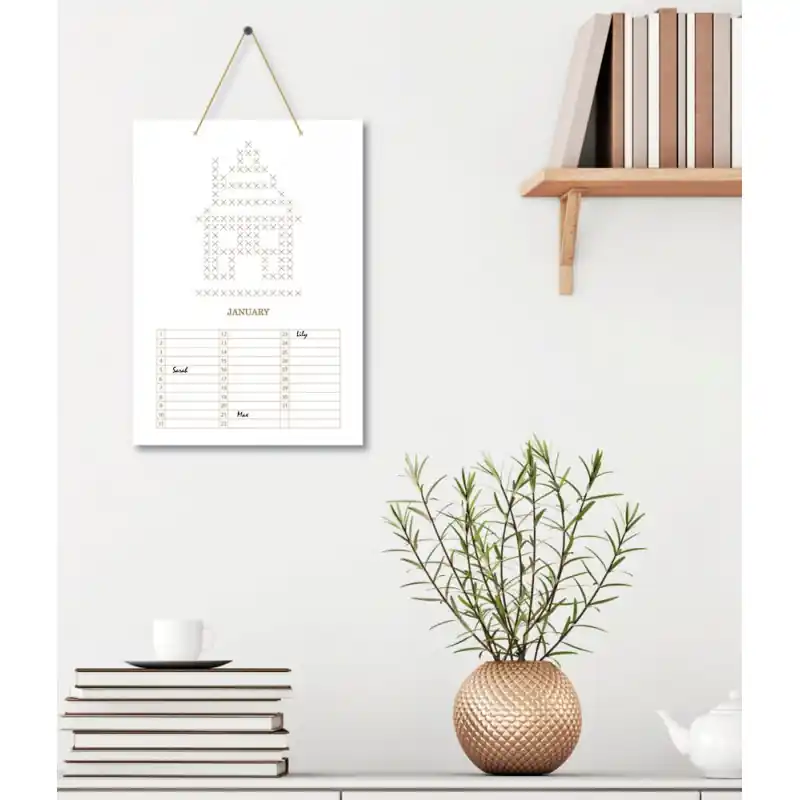 Una volta ricamati tutti i disegni, otterrai un calendario incredibile e molto originale, perfetto per la tua scrivania o dove più ti piace. Ogni pagina contiene due fori per poter far passare un cordino e appendere il calendario facilmente.