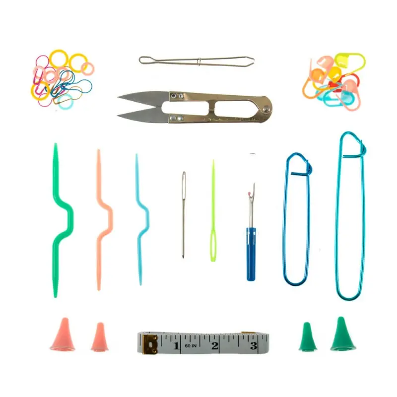 Il Pacchetto di Accessori per Maglieria di Milward è un kit completo che riunisce gli elementi essenziali per aiutarti nei tuoi progetti a maglia e all’uncinetto. Include una varietà di strumenti, come tagliafilo, spille da balia in alluminio in due misure, aghi ausiliari e molto altro.