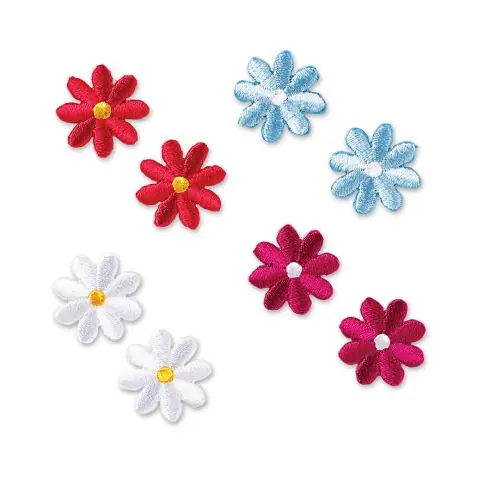 Modello termocollanti fiori 100% poliestere, dimensioni 2 x 2 cm.