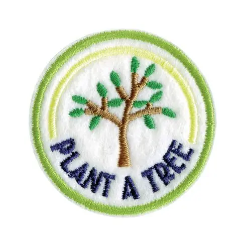 Disegno Termoadesiva “Pianta un albero” 100% poliestere (da bottiglie riciclate), dimensioni 5 cm di diametro.